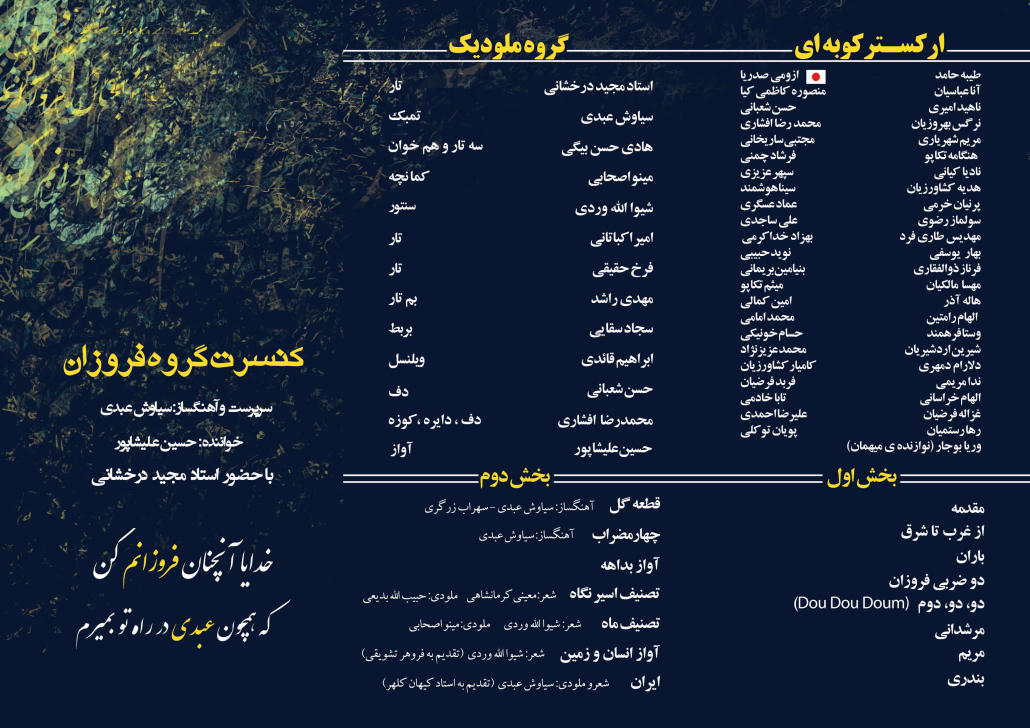 • تار: فرخ حقیقی، امیر اکباتانی